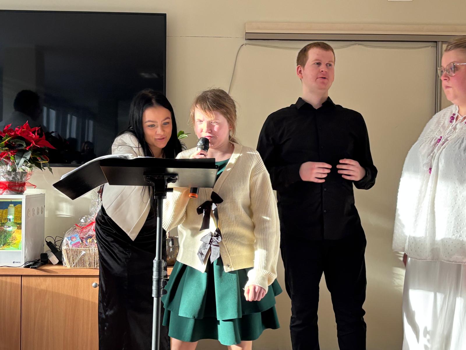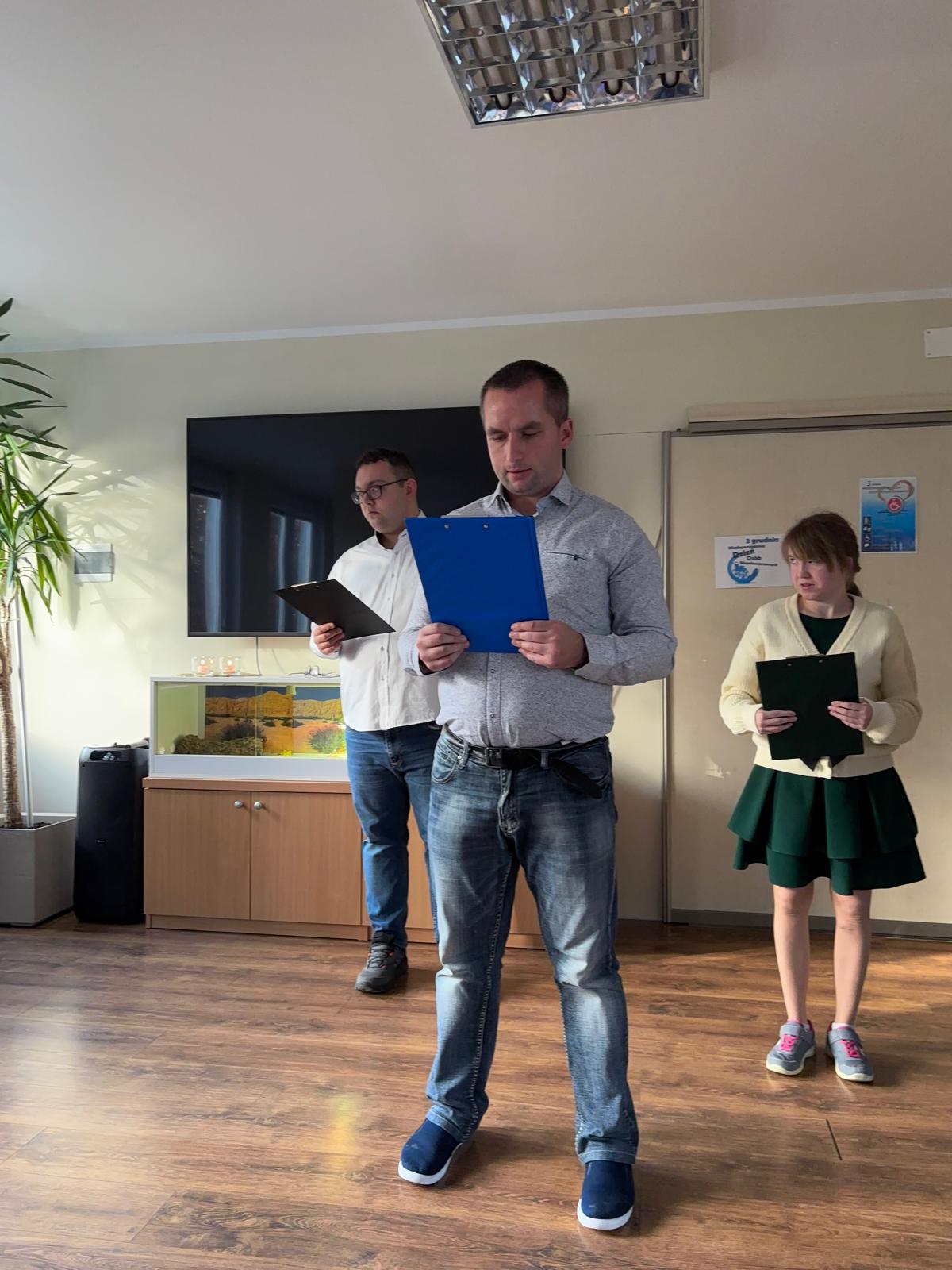 Uczestnicy placówki świętowali ze swoimi bliskimi- było twórczo, pięknie i radośnie. Uroczystość uświetnił występ tenora Grzegorza Uniwersała z zespołu śpiewaków „Tenorzy w bieli”, który zachwycił wszystkich swoim talentem.