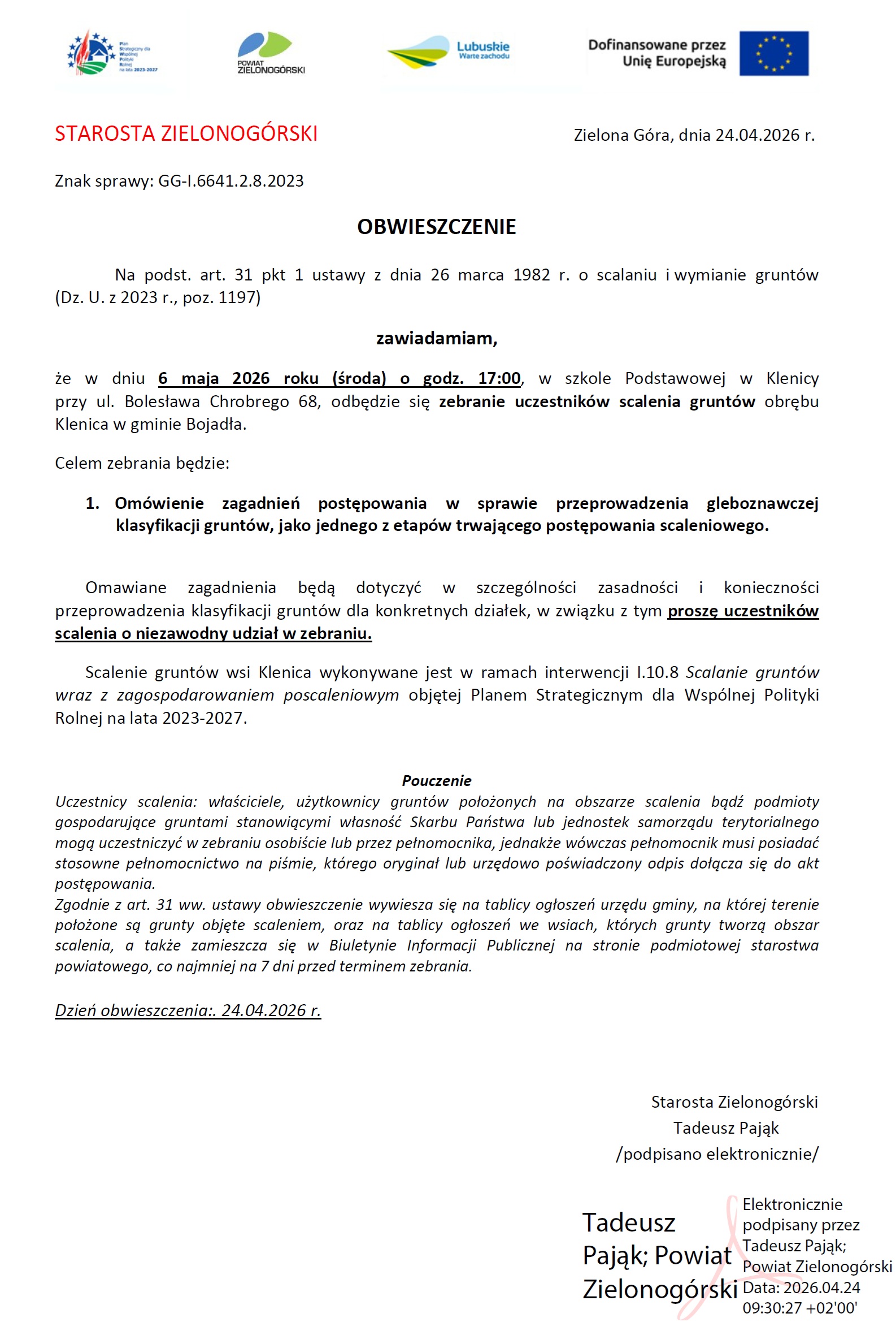 21 kwietnia br. o godzinie 14:00 w budynku Starostwa Powiatowego w Zielonej Górze odbędzie się XXIII sesja Rady Powiatu Zielonogórskiego. Porządek obrad: 1.Otwarcie XXIII Sesji Rady Powiatu. 2.Przedstawienie porządku [...]