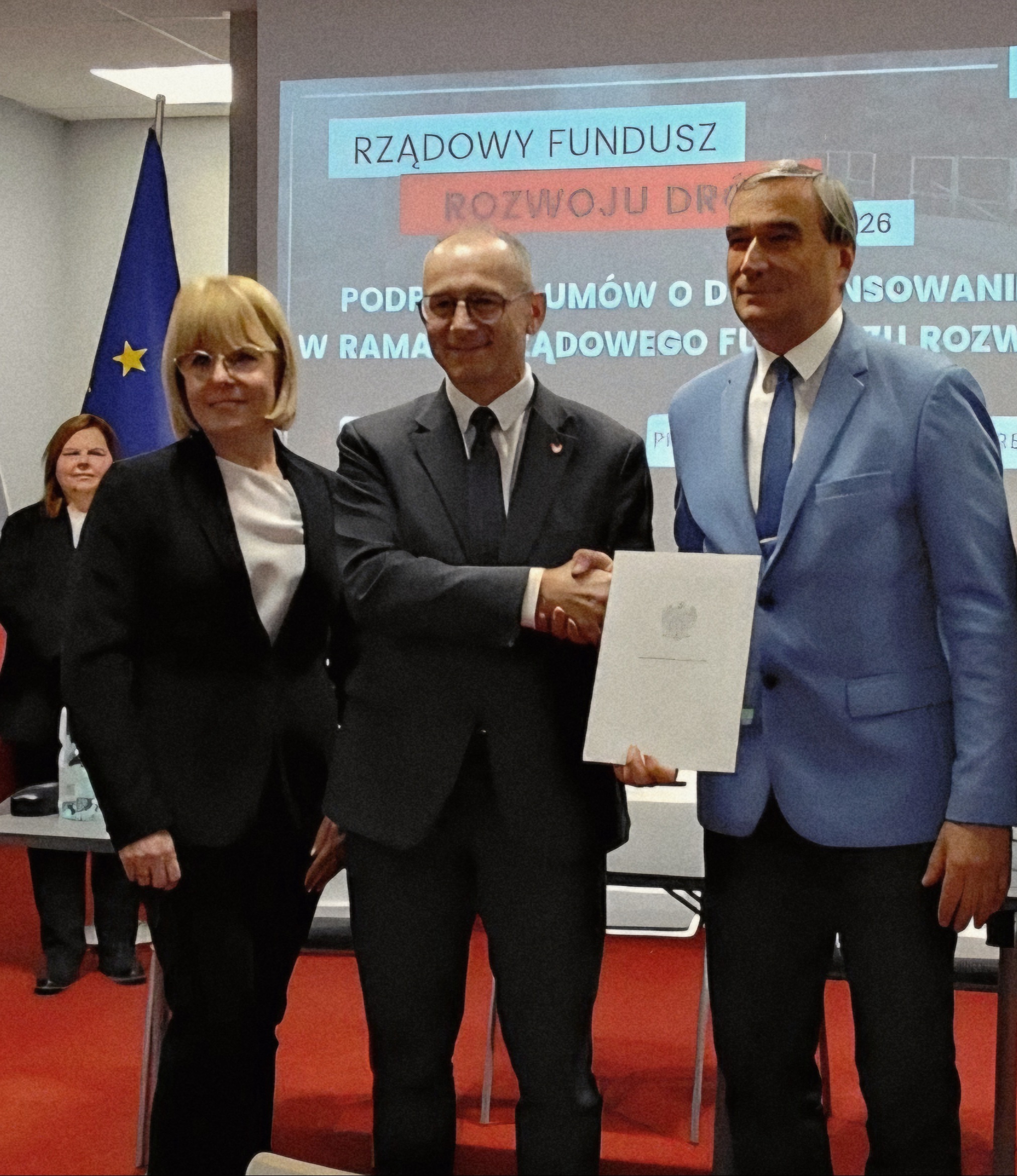 19 marca br. w Lubuskim Urzedzie Wojewódzkim w Gorzowie Wlkp. Tadeusz Pająk Starosta Zielonogórski oraz Agnieszka Szeląg Wicestarosta Zielonogórska, przy kontrasygnacie Edyty Dwojak Skarbnik Powiatu podpisali z Wojewodą Lubuskim Markiem Cebulą dwie umowy na realizację zadań dofinansowanych ze środków Rządowego Funduszu Rozwoju Dróg.