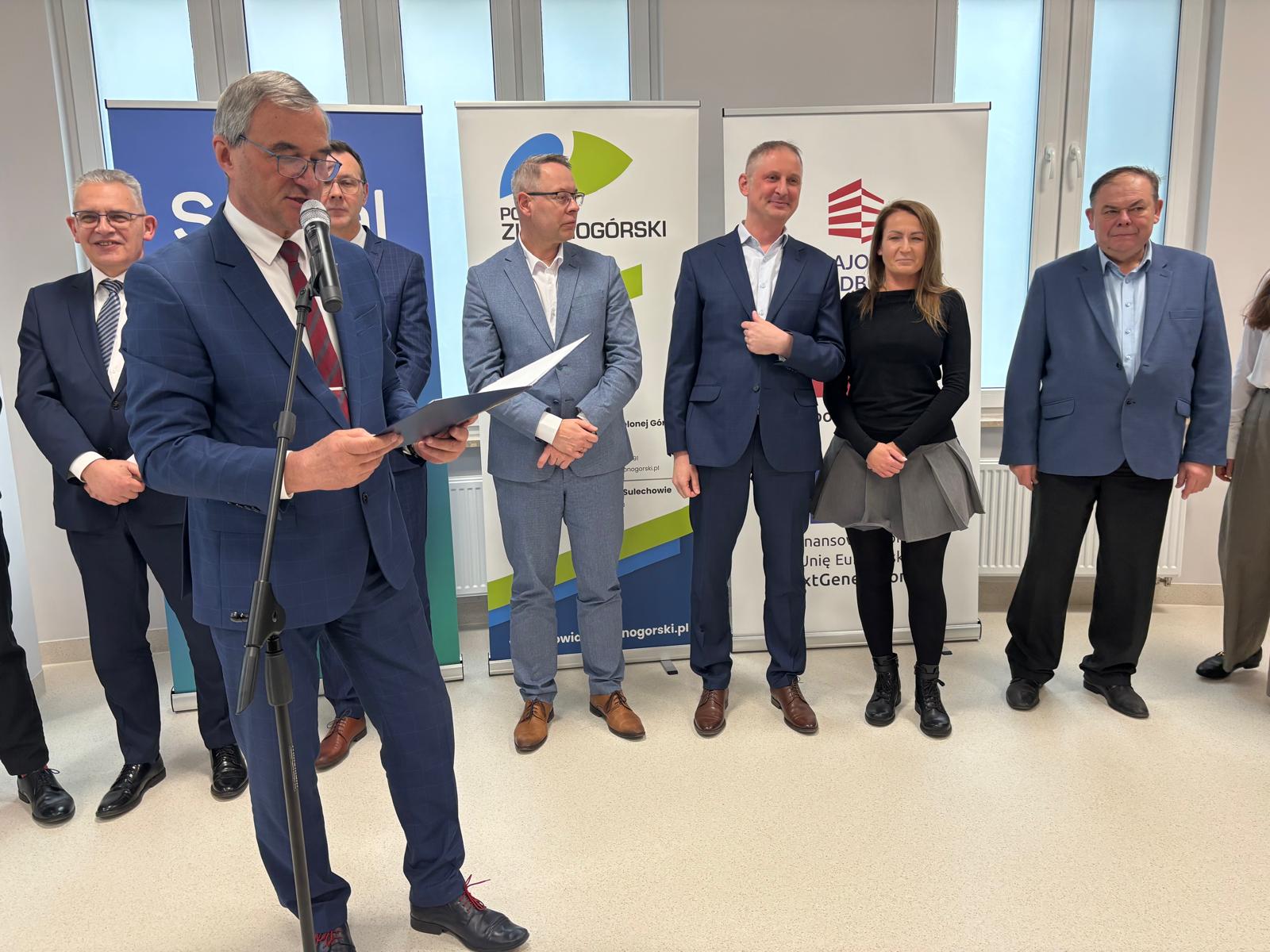 Wojewoda Lubuski Marek Cebula w swoim wystąpieniu podkreślił, że nasze województwo lubuskie rozwija się dzięki temu, że działamy wspólnie, działamy we wspólnocie ale też ze wsparciem środków Unii Europejskiej, które są nam potrzebne. Marzeniem młodych pokoleń było wstąpienie do Unii Europejskiej, ale także do wspólnoty, która będzie nam gwarantowała bezpieczeństwo. To bezpieczeństwo, to między innymi ochrona zdrowia. Pogratulował prezes oraz wszystkim osobom zaangażowanym w realizację projektu imponującej inwestycji.