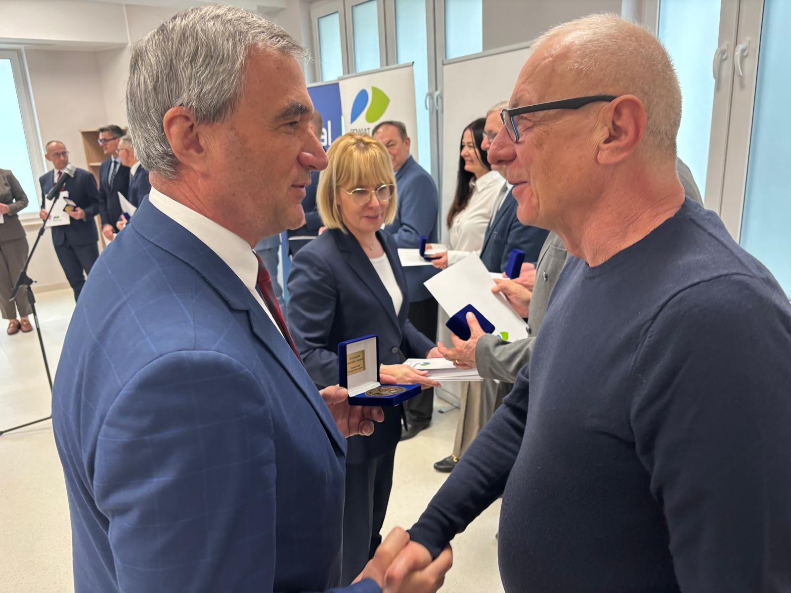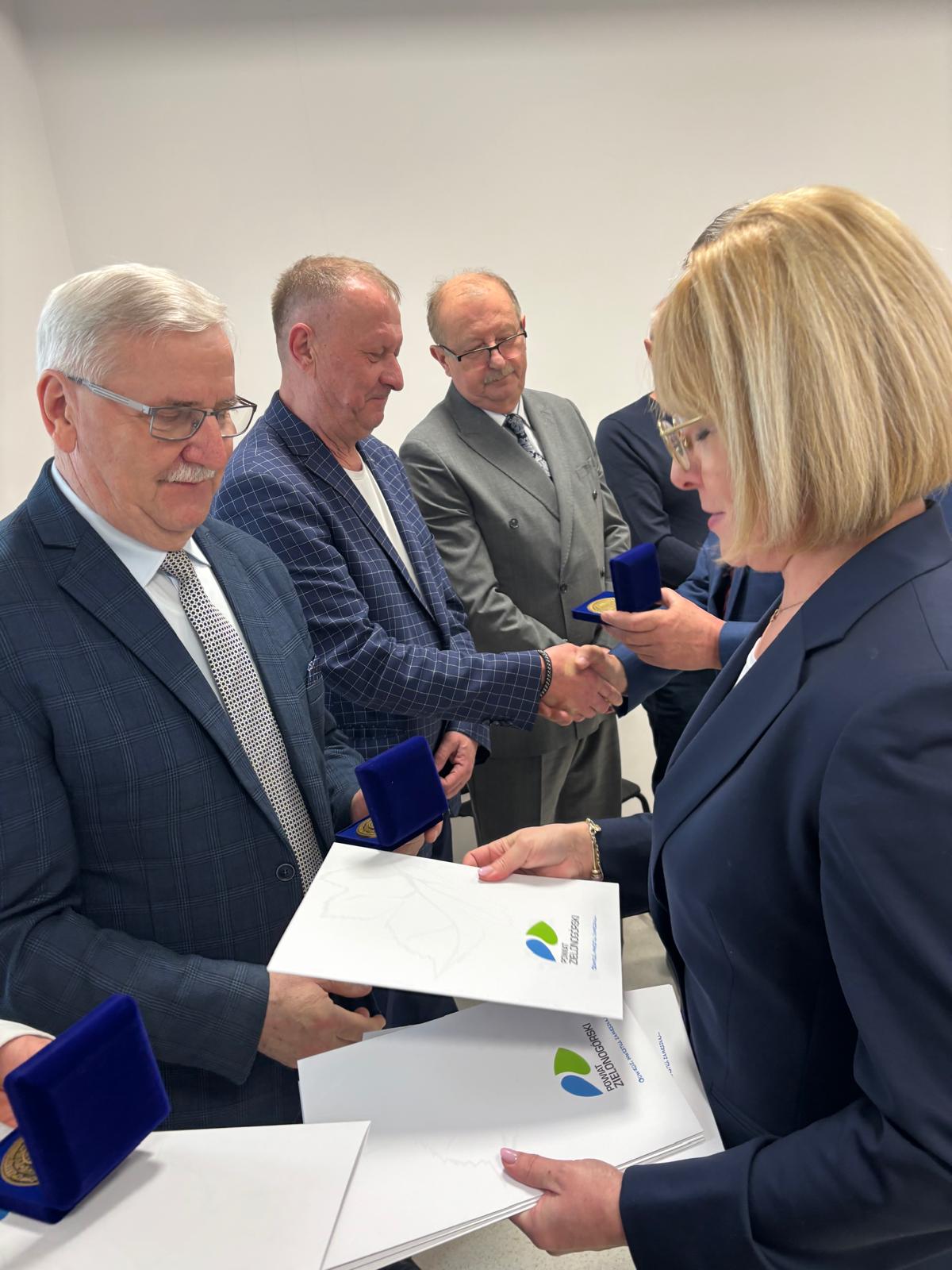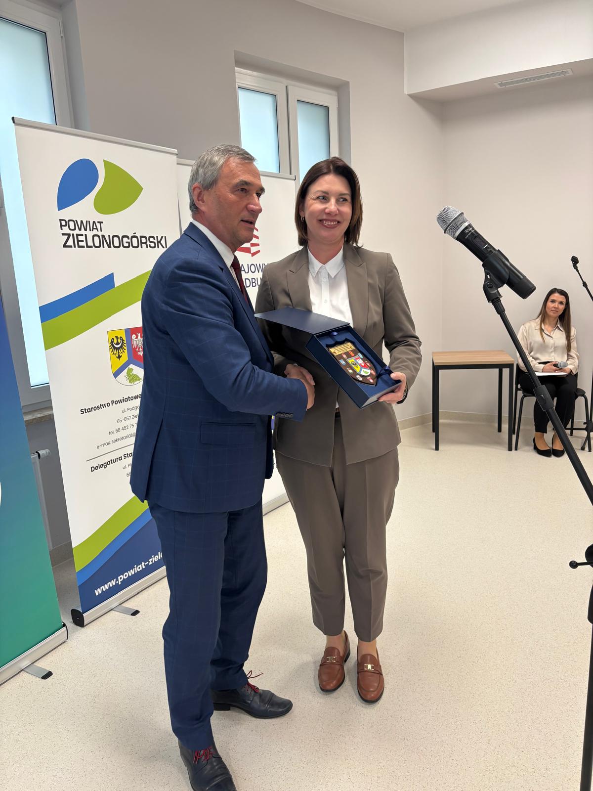 Starosta wręczył Prezes Izabeli Kniżatko pamiątkowy ryngraf dla pracowników, szczególnie Oddziału Rehabilitacji i Zakładu Fizjoterapii. Uhonorował także osoby zaangażowane w realizację projektu Medalami Powiatu Zielonogórskiego, które otrzymali: prezes Izabela Kniżatko, wojewoda Marek Cebula, marszałek Sebastian Ciemnoczołowski, rektor UZ Wojciech Strzyżewski, dyr. NFZ Edward Jakubowski, dyr. ENEA S.A. ZG Andrzej Ryczkowski, burmistrz Wojciech Sołtys, prezes zarządu Westa Building Sp. z o.o. Tomasz Sobina, kierownik budowy Katarzyna Frątczak-Mazur, Marek Prządka- nadzór inwestorski, Edyta Dwojak skarbnik powiatu, Wojciech Waligóra członek zarządu, Robert Kostek naczelnik Wydziału Inwestycji i Projektów Starostwa Powiatowego w Zielonej Górze, były Starosta Zielonogóski Krzysztof Romankiewicz i były dyrektor szpitala Wojciech Świtała.