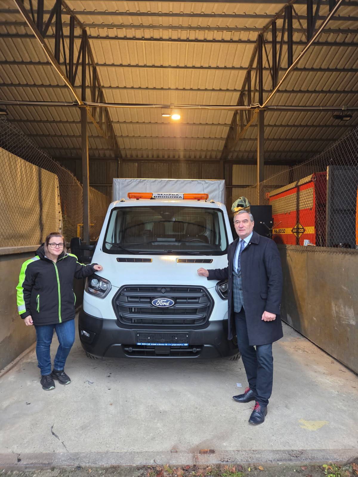 Do użytku pracowników oddano auto marki Ford Transit, 7-osobowe, wyposażone w skrzynię z plandeką, z silnikiem o pojemności 1.996 cm².