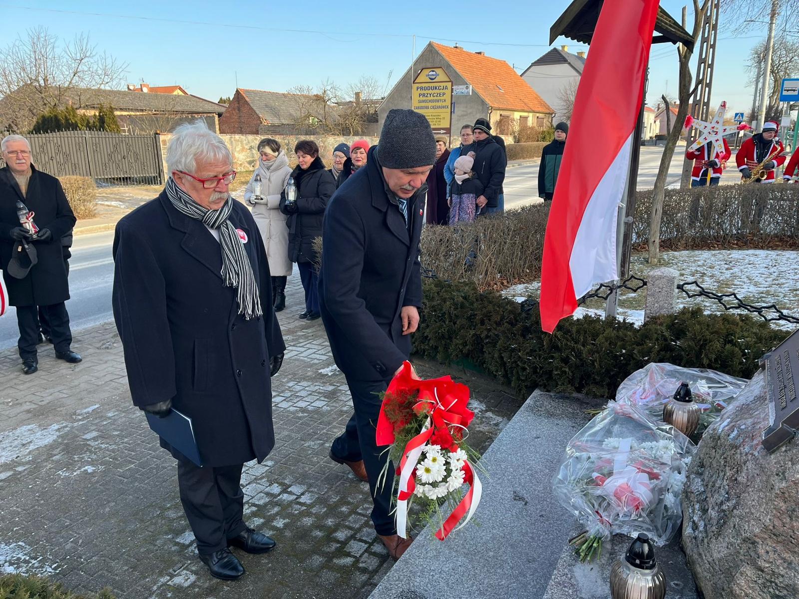 Oddając hoł bohaterom tamtych dni Wojciech Waligóra wspólnie z samorządowcami i mieszkańcami złożył kwiaty pod Pomnikiem Bohaterów Bitwy o Nowe Kramsko.