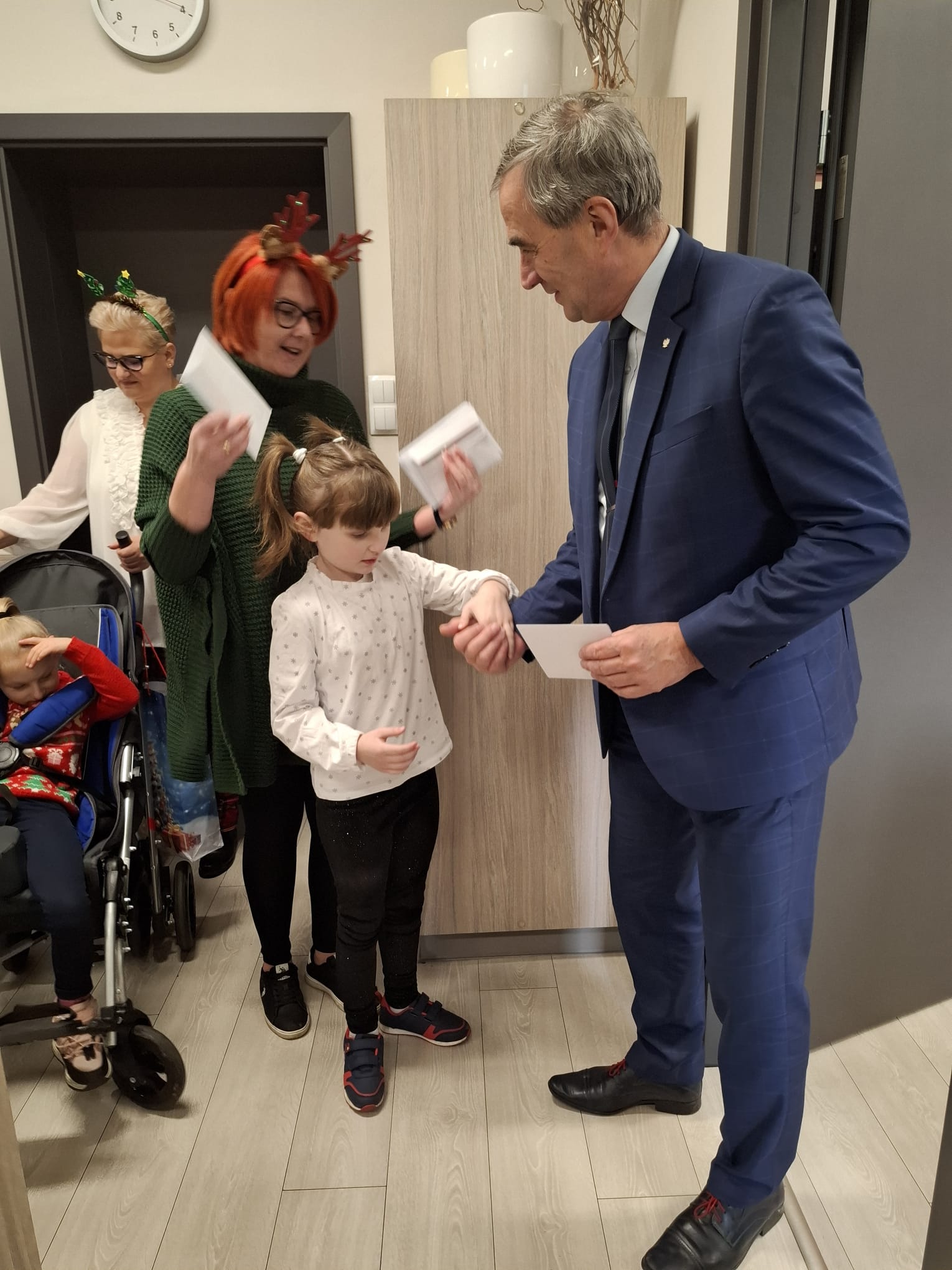 Starosta i wicestarosta złożyli gościom świąteczne życzenia- pełnych ciepła i uśmiechu Świąt Bożego Narodzenia, a także wielu dobrych chwil w nadchodzącym Nowym Roku oraz podziękowali za pięknie wykonane kartki świąteczne przygotowane przez dzieci. To wyjątkowy prezent, który sprawił ogromną radość.