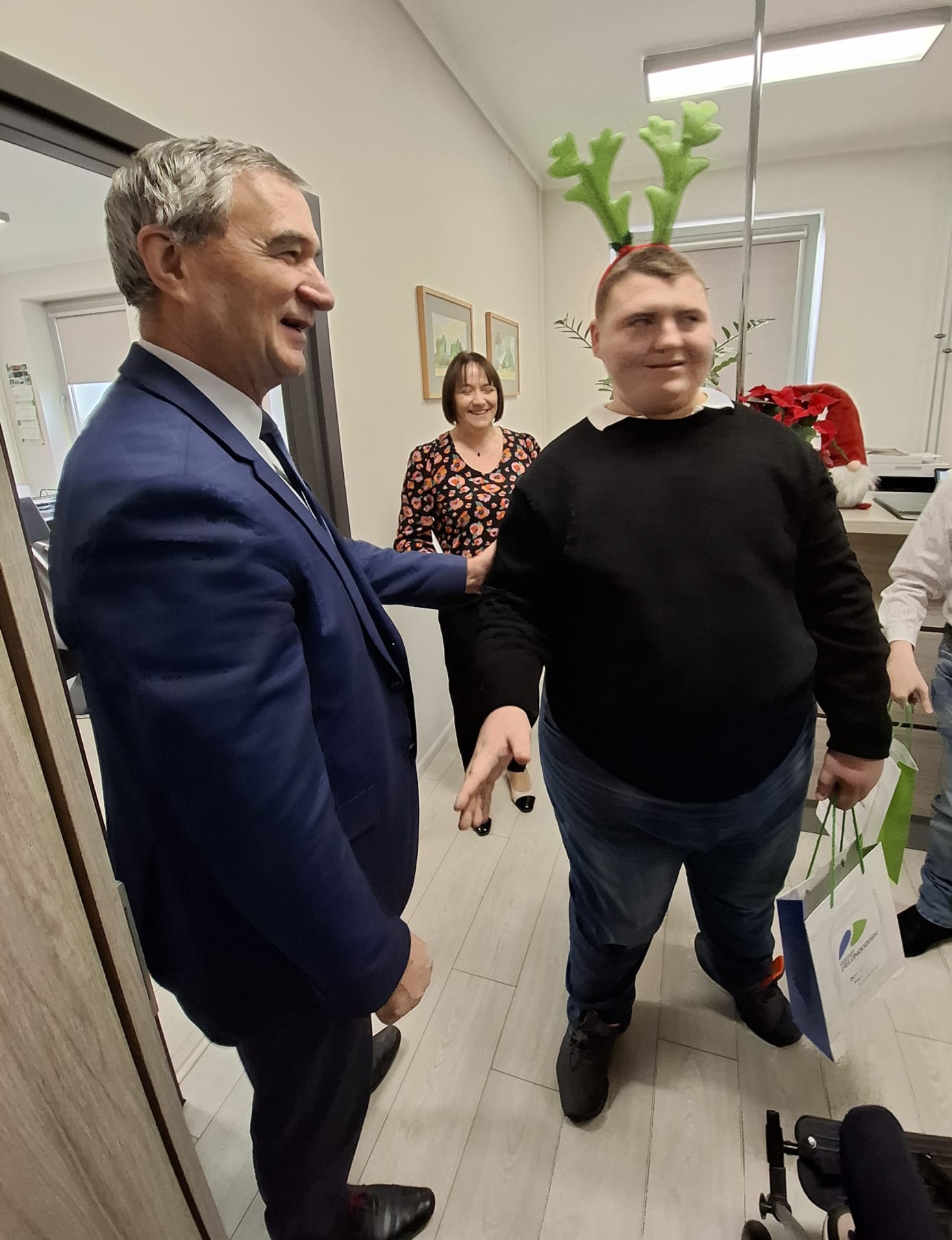17 grudnia br. Starostwo Powiatowe w Zielonej Górze odwiedzili wyjątkowi goście- podopieczni Specjalnego Ośrodka Szkolno-Wychowawczego w Sulechowie wraz z opiekunami: Panią Jagodą Hejnowską, Panią Klaudią Słopiecką, Panią Joanną Reymann-Olejnik oraz Panią Anną Gronek.