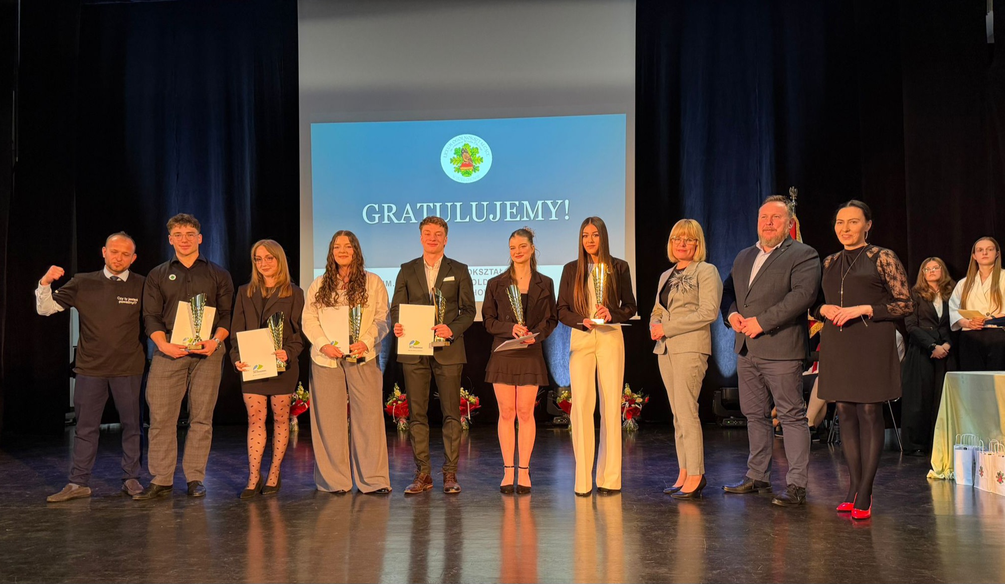 Podczas uroczystości, w imieniu starosty zielonogórskiego Tadeusza Pająka wicestarosta wraz z radnymi powiatu zielonogórskiego wręczyli absolwentom nagrody- statuetki „Złoty Laur Powiatu Zielonogórskiego” oraz „Sportowy Laur Powiatu Zielonogórskiego”. To wyjątkowe wyróżnienia dla uczniów szkół ponadpodstawowych, prowadzonych przez powiat zielonogórski, którzy w trakcie nauki osiągali sukcesy w olimpiadach, konkursach przedmiotowych oraz zawodach sportowych.