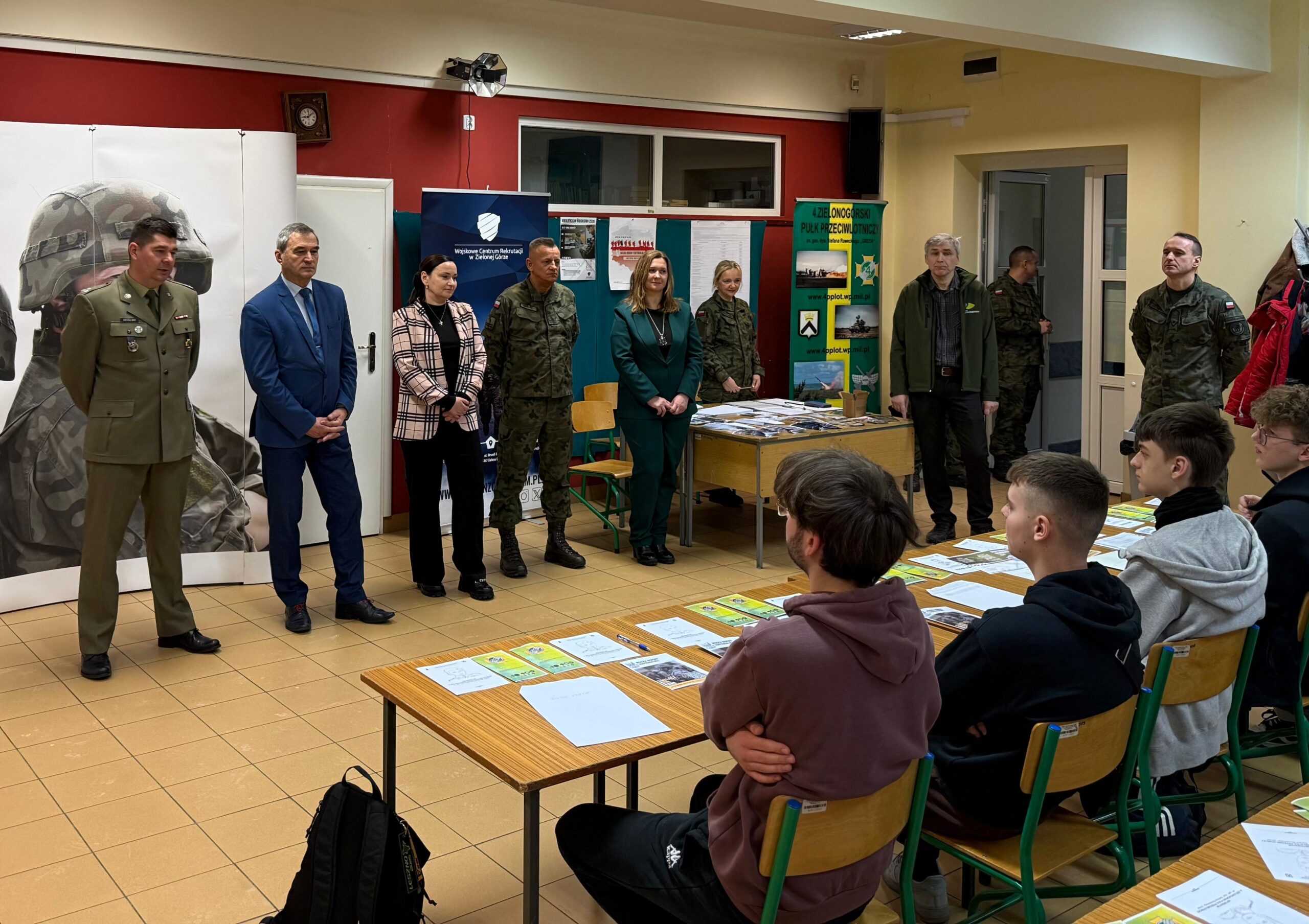 05 lutego br. starosta zielonogórski Tadeusz Pająk oraz sekretarz powiatu Ewa Seremak byli obecni podczas rozpoczęcia kwalifikacji wojskowej dla powiatu zielonogórskiego, która potrwa do 03 marca br. W spotkaniu uczestniczyli również przedstawiciele samorządu z Gminy Sulechów, a także przedstawiciele wojska- WCR Zielona Góra, 4. Zielonogórski Pułk Przeciwlotniczy, 15 Lubuska Brygada Obrony Terytorialnej.